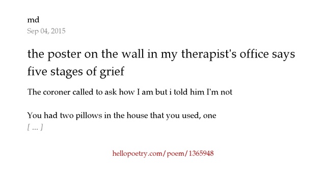 5 Steps of the Grieving Process: http://grief.com/the-five-stages-of-grief/ "Time Does Not Bring Relief" by Edna St Vincent Millay: Website 3: Poem What stage of grief is this poem demonstrating? What lines of the poem make you think this? Coping Methods ... Retrieve Document